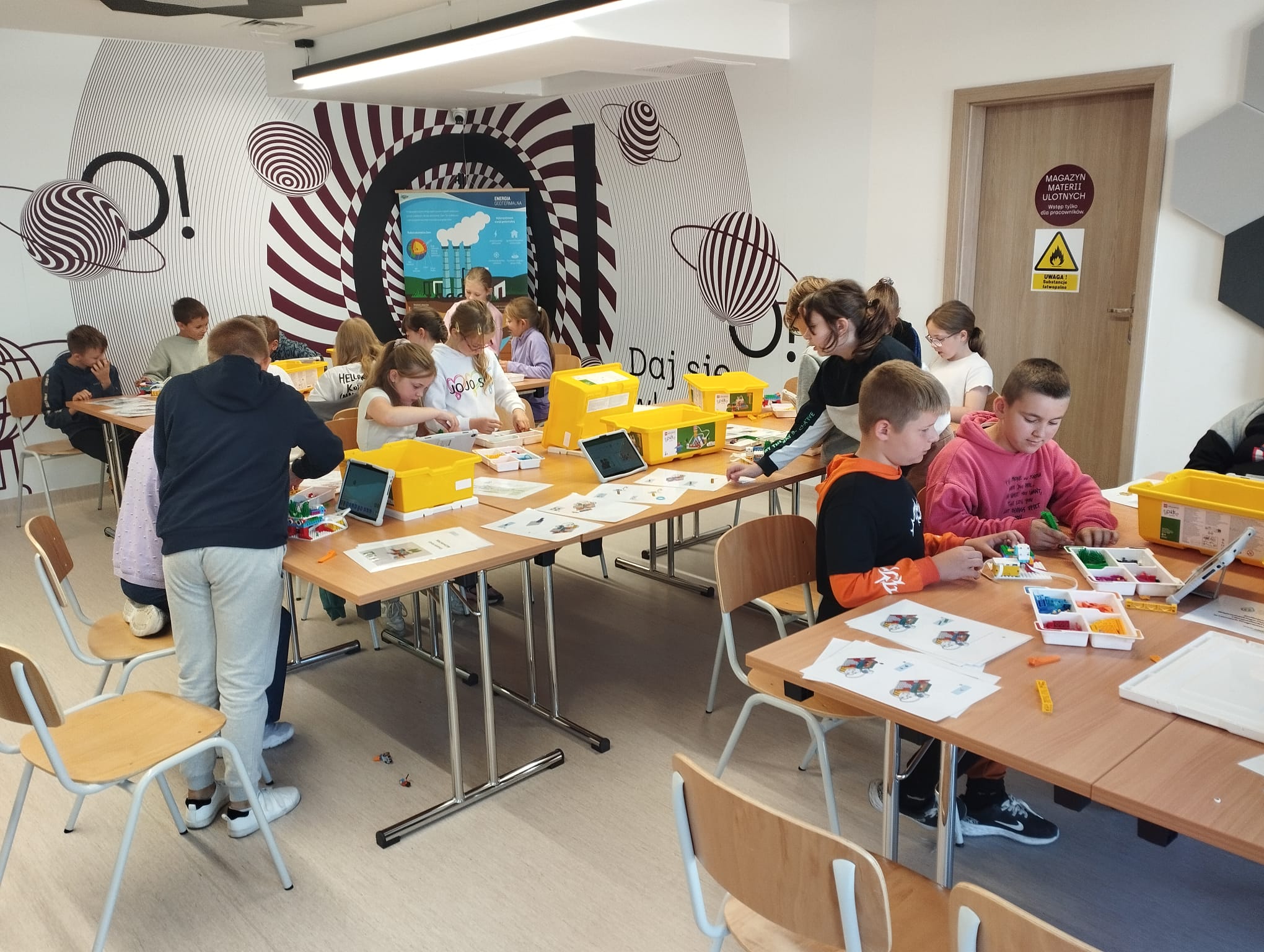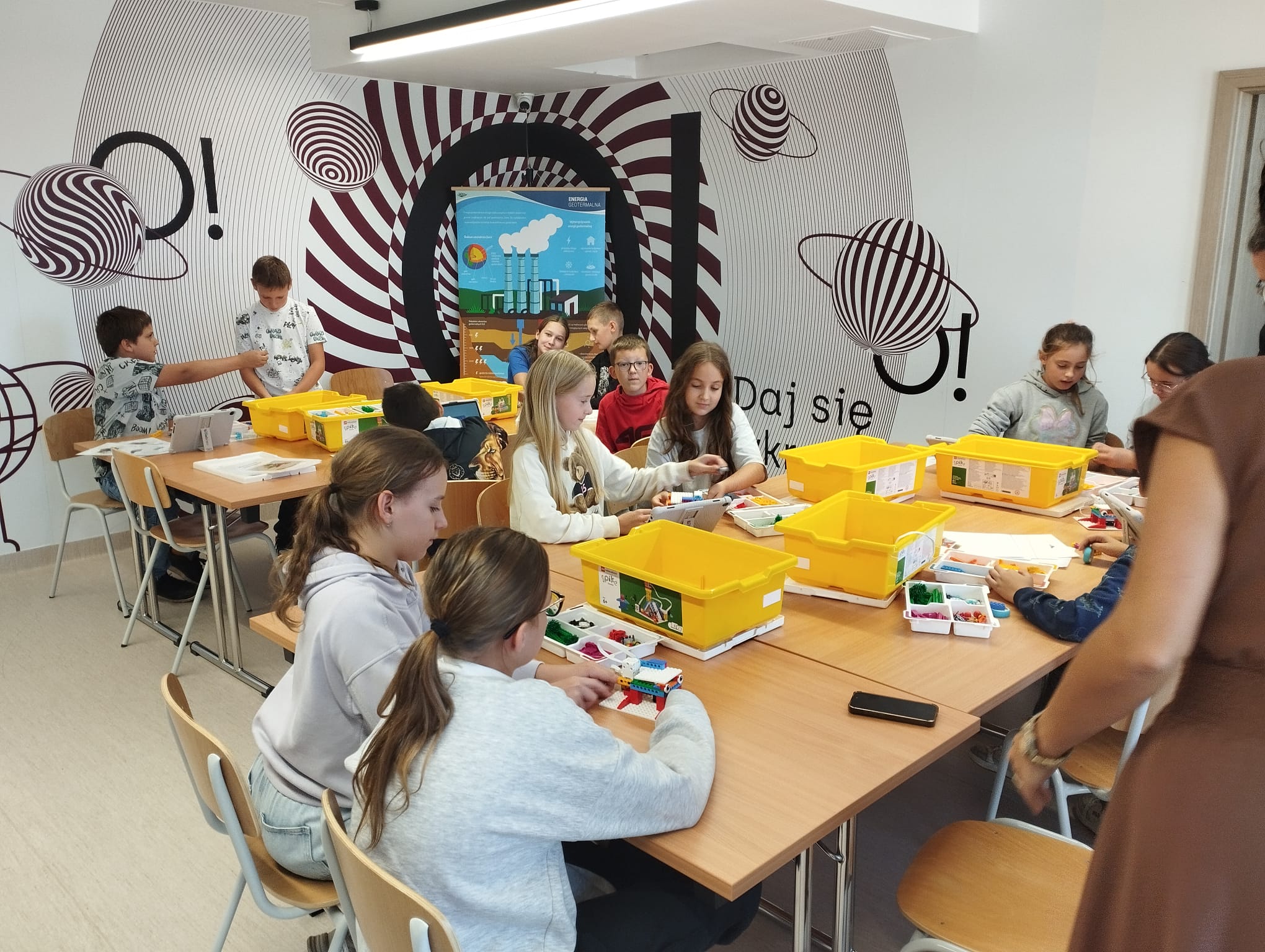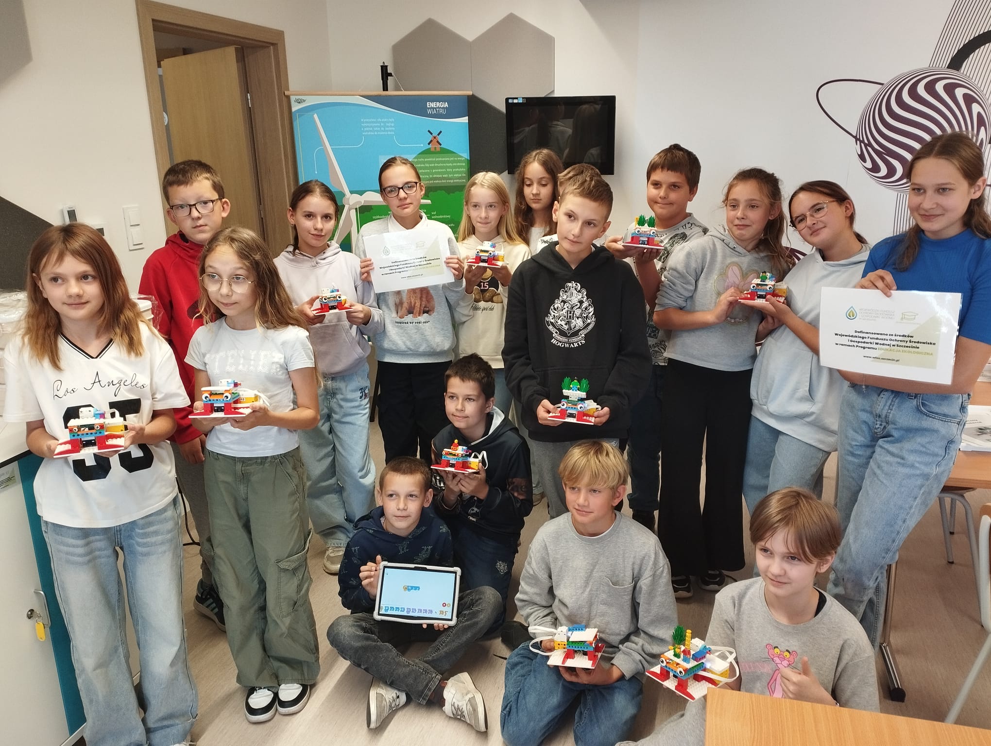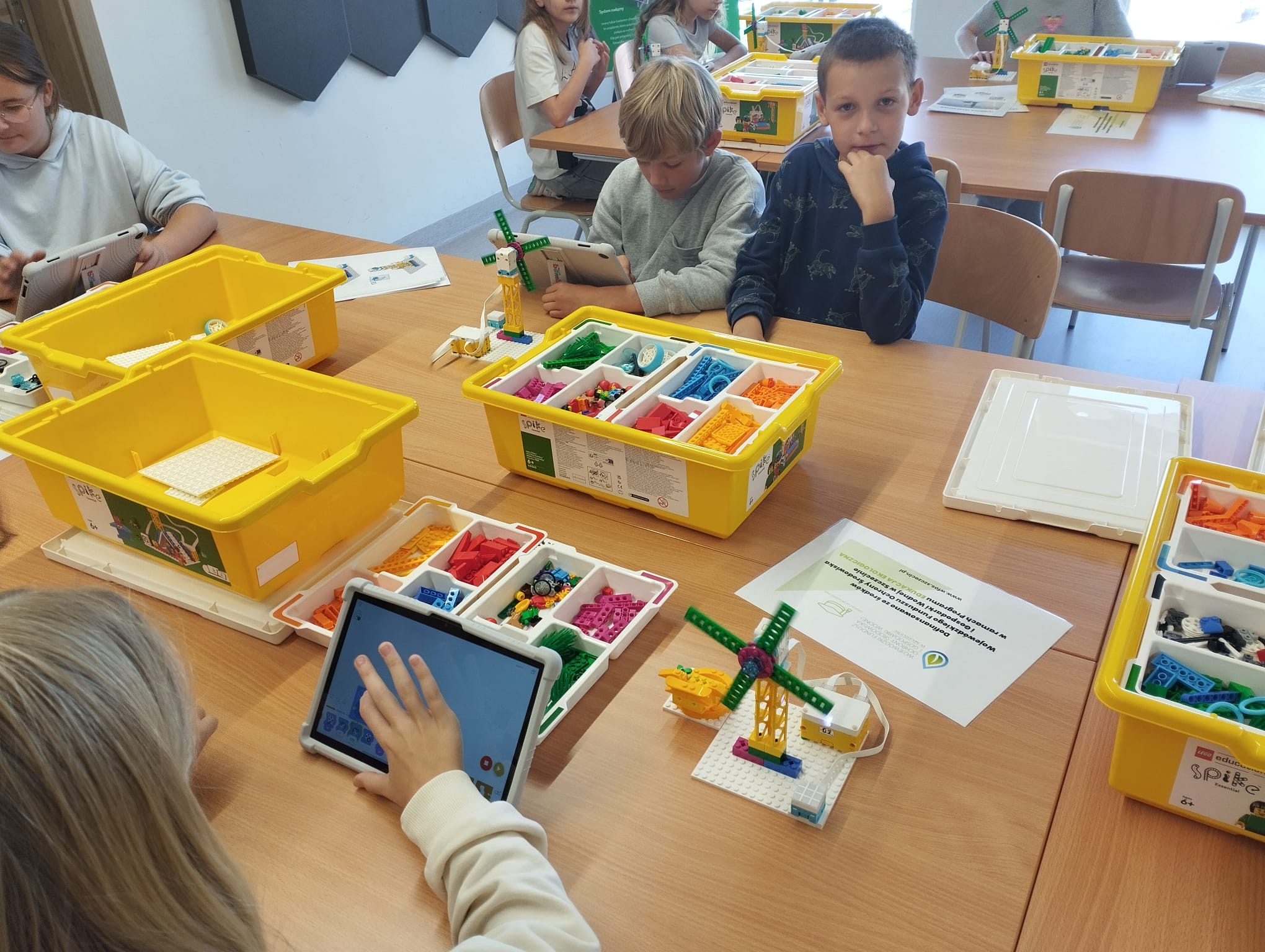 Ponadto obie grupy w rekordowo szybkim czasie budowały z klocków, a później programowały swoje modele elektrowni wiatrowych ![]()