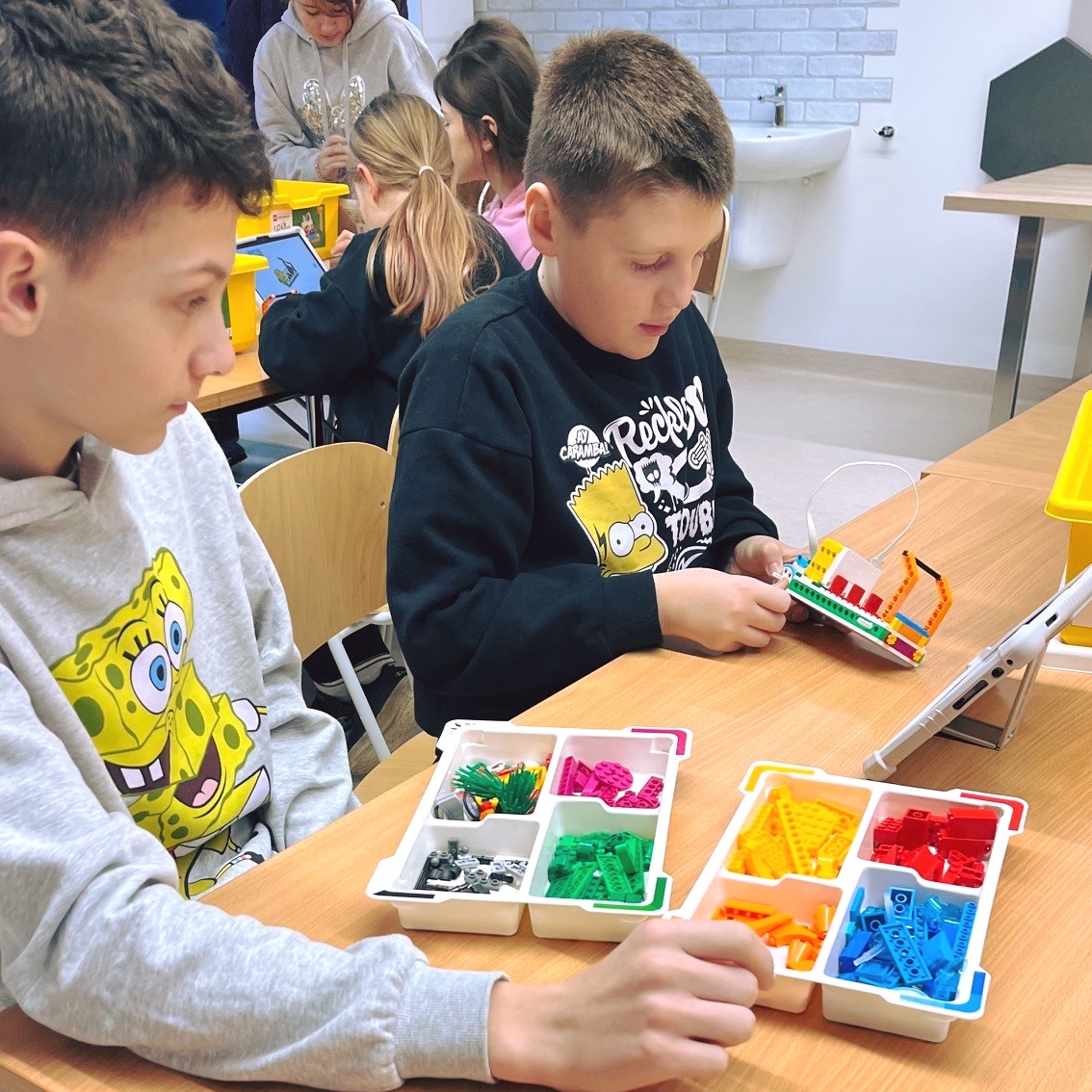 Zadanie okazało się dla nich nie tylko proste, ale też bardzo wciągające — z ogromnym zapałem modyfikowali swoje konstrukcje i tworzyli kolejne funkcje. Kreatywność na najwyższym poziomie! 🔧✨