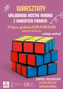 Zapraszamy wszystkich fanów łamigłówek – małych i dużych – na wyjątkowe warsztaty z układania kostki Rubika, które poprowadzi Hubert Firek , doświadczony instruktor speedcubingu! Gdzie?